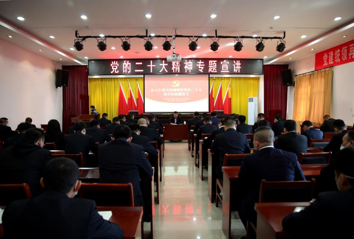 黨的二十大勝利召開后,長春興煤業(yè)黨支部書記。董事長趙廷龍帶頭學習黨的二十大精神,為黨員干部員工進行專題宣講。