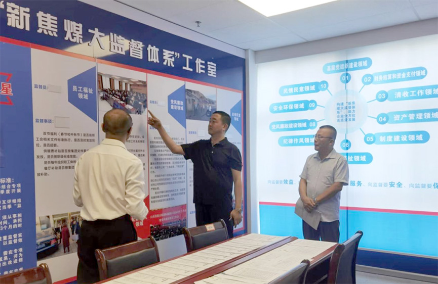為進一步推進“新焦煤大監(jiān)督體系”構(gòu)建工作走深走實,8月3日,山煤國際鑫源公司黨委書記、執(zhí)行董事高旭峰對鑫源公司“新焦煤大監(jiān)督體系”工作室建設(shè)情況進行調(diào)研指導(dǎo),分管副經(jīng)理、相關(guān)工作負責(zé)人參加。
